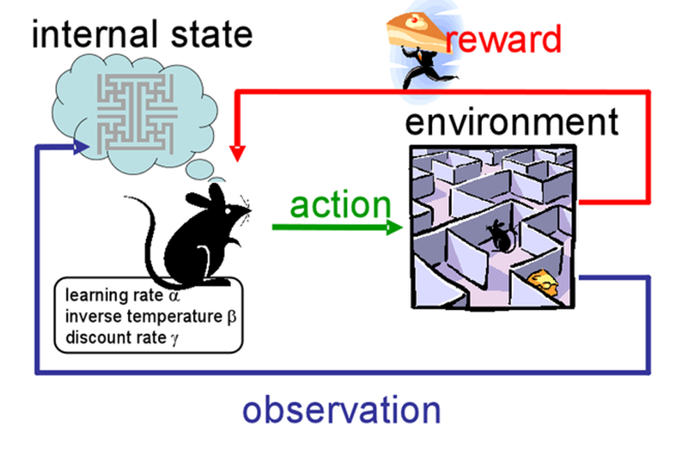 강화학습(reinforcement learning)은 행동심리학에서 영향을 받았습니다. 이 개념은 위의 두 학습 방법과 달리 agent, environment, state, action, reward 등의 개념을 가지고 자신이 원하는 방향으로 행동을 할 때, reward를 받을 수 있도록 설계한 학습 방법입니다. 이 방법의 예로는 deep q learning, robot제어, game AI(알파고) 등이 존재합니다.