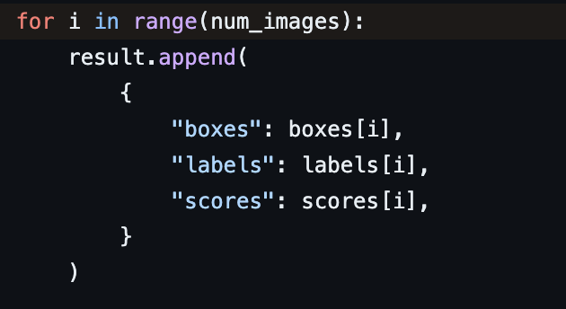 torchvision detection model의 output인 pred은 다음과 같은 형태를 갖습니다.