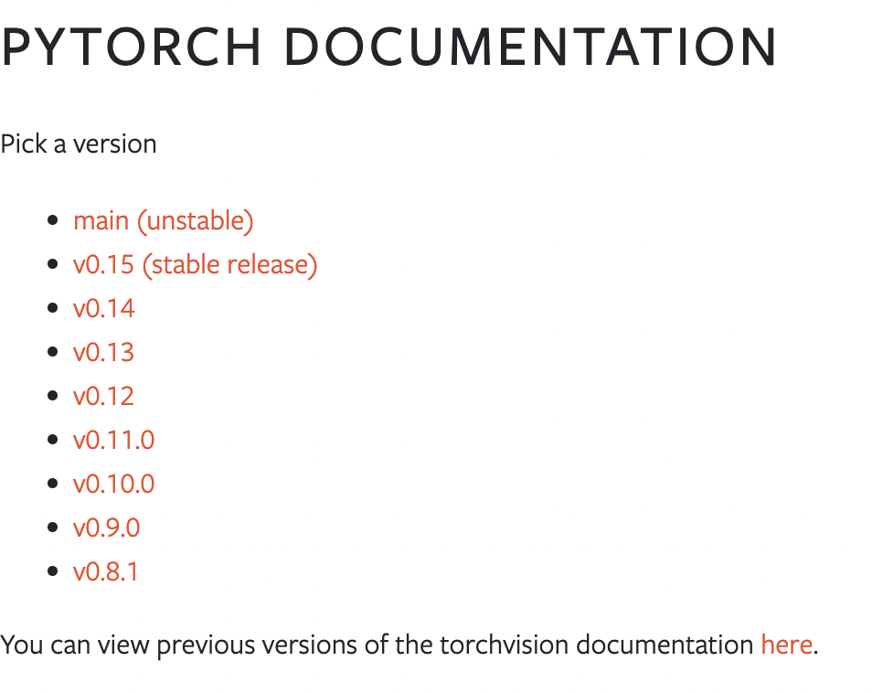 최근 torchvision을 둘러보니, 2023년 5월 기준 version이 main (0.15.0a0+282001f) 까지 나왔습니다.