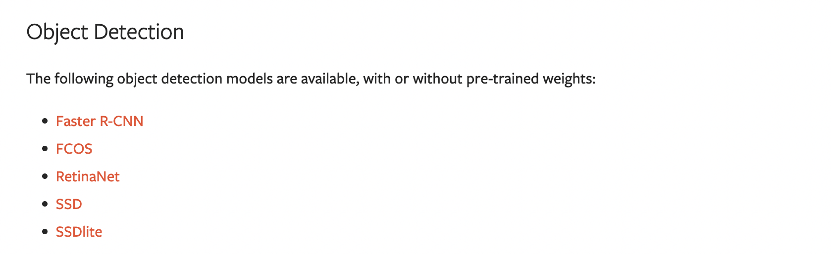 최신 version의 torchvision에서 제공하는 object detection은 다음과 같습니다.