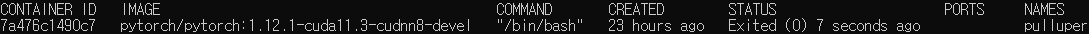docker run -it --gpus all --name pulluper pytorch/pytorch:1.12.1-cuda11.3-cudnn8-devel /bin/bash